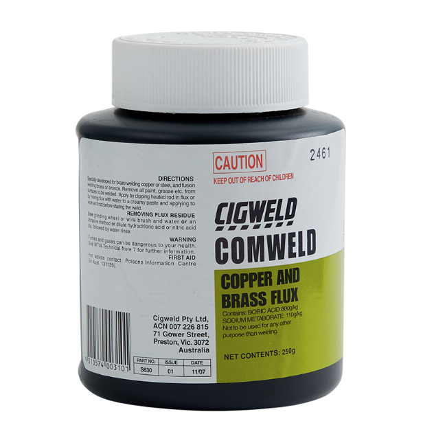 Comweld General Purpose Silver Brazing Flux is recommended for use with Cadmium beating and Cadmium free brazing allows with a low to medium silver content. It is an excellent flux for medium to high temperature brazing.
